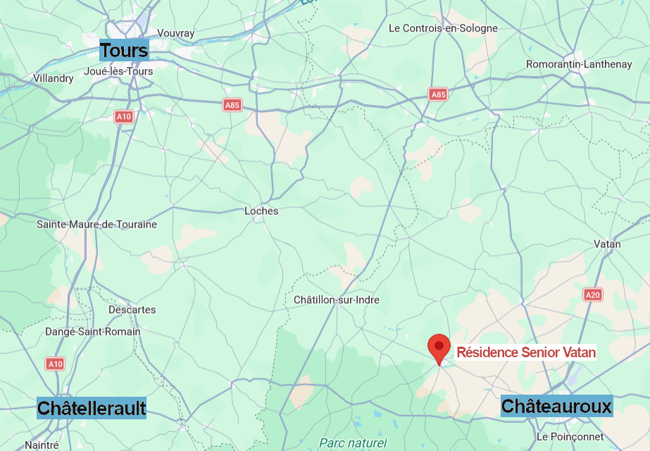 Située au cœur de l’Indre, la résidence accueille des seniors et leurs familles venus de tout le territoire et des environs. Grâce à sa localisation centrale, elle reste facilement accessible depuis plusieurs villes majeures de la région en étant notamment :